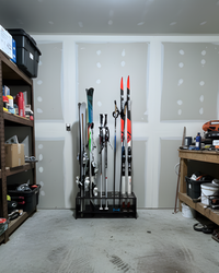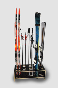 - Praktiskt: Skidorna behöver bara placeras i skidstället, och de är snyggt och prydligt förvarade. Skidstället kan också användas för att förvara stavar och andra vintertillbehör.