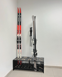 Skidställen i trä är färdiga att användas och har öppningar på sidorna för att koppla ihop dem i en "oändlig" rad. Det är också möjligt att koppla ihop skidstället i trä med ett ställ för längdskidor.